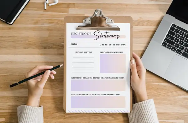 Este cuadernillo te permitirá realizar un seguimiento personalizado de tus síntomas y así desarrollar conciencia sobre tus patrones desencadenantes, notar cómo reduces tus niveles de estrés y preocupación y ver mejoras tangibles en tu bienestar.