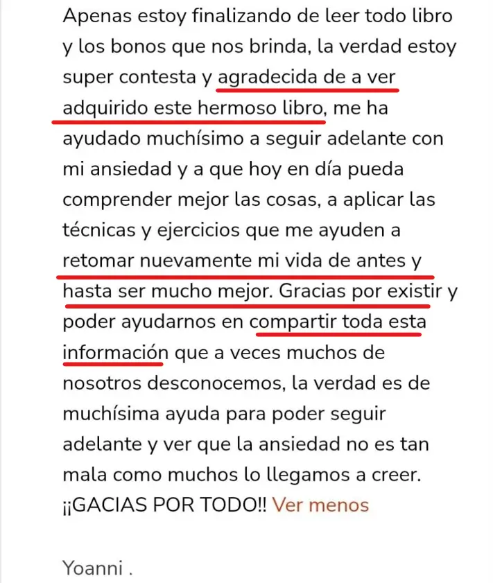 Y ahora que logré desarrollar un enfoque integral que combina técnicas de Psicología, Neurociencia y Bienestar Holístico quiero que el material completo sea accesible a cualquier persona que quiera mejorar su vida y ya esté cansada de terapias tradicionales que solo le dejan recomendaciones vacías.